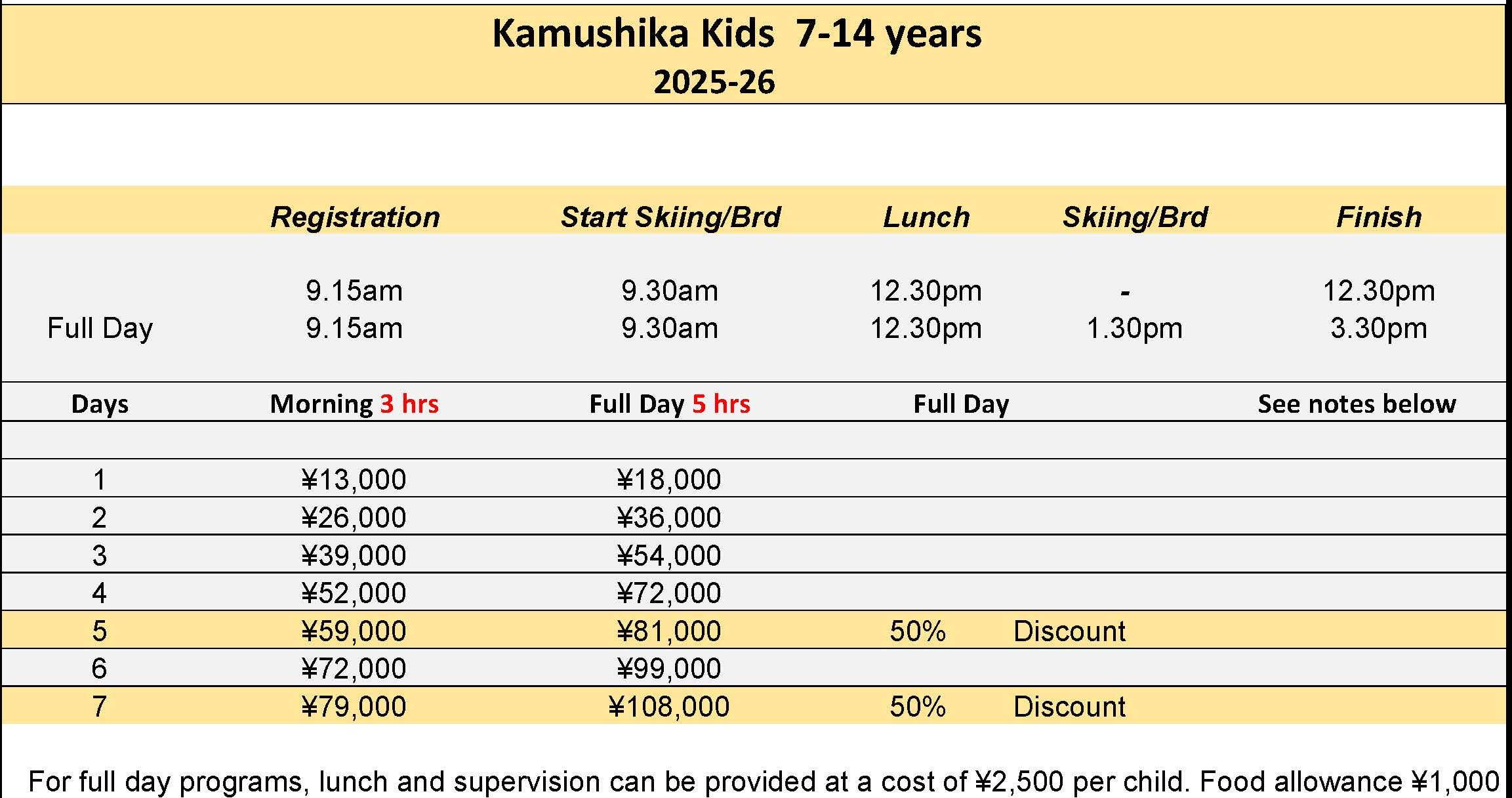 Kamuska Kids is a half and full-day group ski program for children 7-14 years, and offers your child a professional and memorable ski and snowboarding holiday experience. Our specialist children’s instructors will ensure your child has tons of fun while improving their skiing, while safely exploring the mountain.