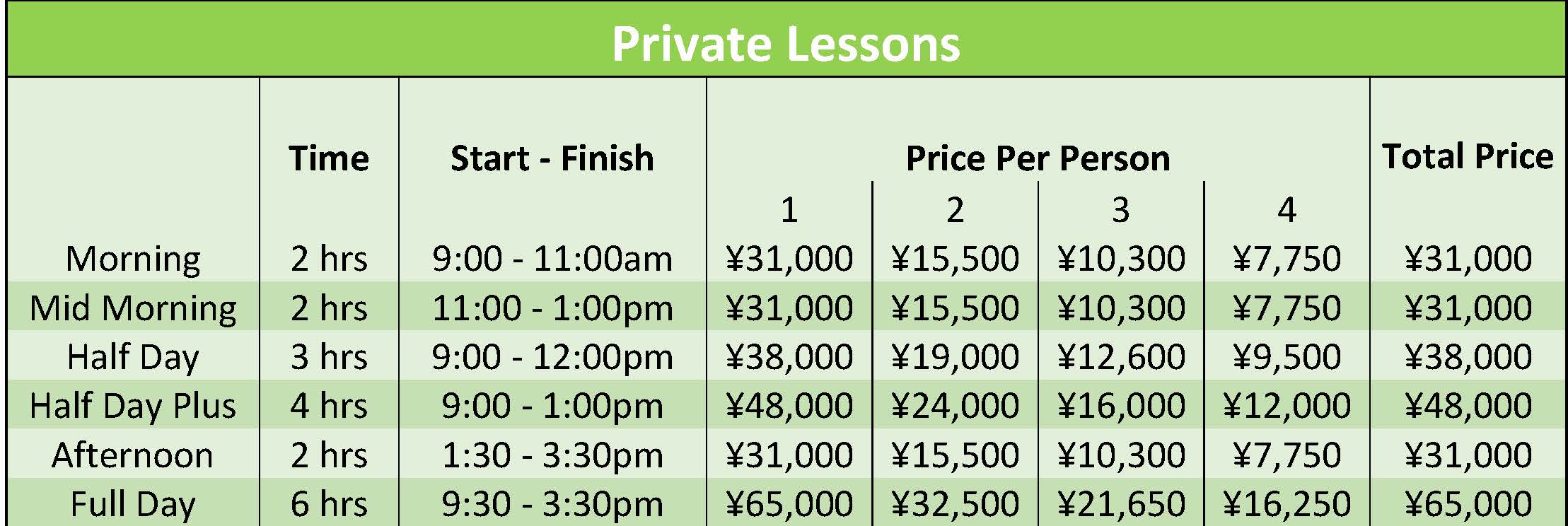 Private Ski & Snowboard lessons in both Madarao & Tangram have a maximum of 4 persons in the lesson (this may be dependent on the individuals’ skill levels). Adding additional people to a private lesson will incur an additional charge.